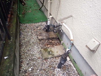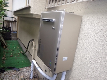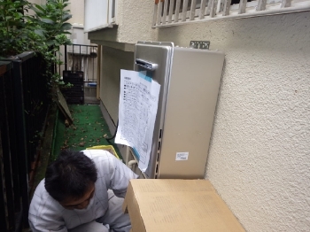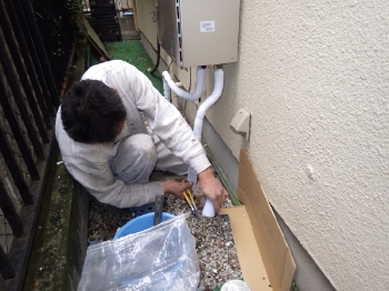配管部分の施工が進んでいきます。 | 新しい給湯器が設置完了しました。 後はガス会社さんにガス栓を結んでいただければお湯が使えるようになります。 |