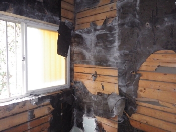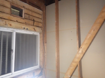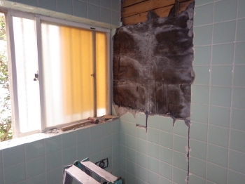 S様邸は築30年以上ということもあり、壁面の補強に使われていたザラ板もひどく傷んでおりましたので外していきます。 |