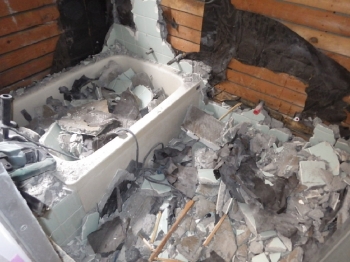 既存の浴室を解体するところからリフォームは始まっていきます。 |