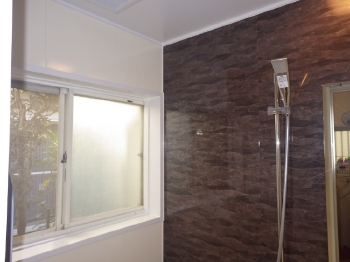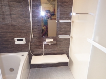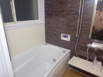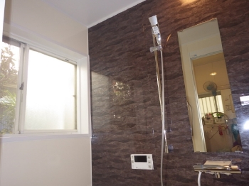 大きな鏡も取り付けられ、また自動湯沸かし器も設置されました。これでいつでも暖かいお風呂に入ることでができます。 |