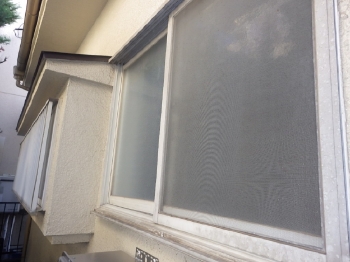 | 窓部分の面格子は今回交換のために撤去させていただきます。 | 面格子の撤去が完了いたしました。 面格子の交換後のお写真は、また後日掲載させていただきます。 |