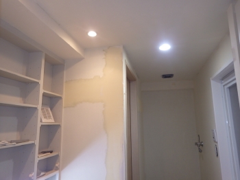 | グレー色のパネルで4面同色にしたので、暗くなるかとお客様が心配されてましたが、3台取り付けられたダウンライトによって全く問題はありませんでした。 |