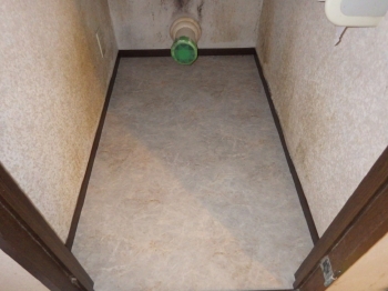| 新しく床面にCFシートを張りました。 今回のトイレリフォームは、便器と床面のリフォームになります。 |