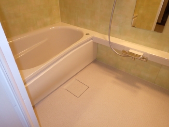 | こちらが施工後の浴室です。 施工前と比べると一目瞭然、浴槽のまたぎもかなり低くなり、生まれ変わったように綺麗な浴室になりました。 |