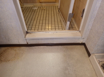 | 浴室へ出入りするドア枠も、経年の劣化が進んでおります。また段差も高くなっているので、万一の際に危険が伴いますね。 | こちらは施工前のトイレです。 ウォッシュレットもない、古いタイプの便器でした。 |