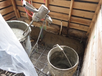 次にミキサーを使い、土間を打つコンクリートを攪拌していきます。 |
