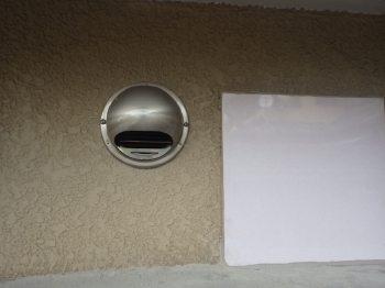 外から見た換気口はこのように塞ぎ閉じ、この後新しいベンドキャップを取り付けていきます。 |