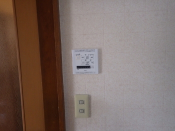 洗面所壁面の浴室換気リモコンも取り付けが完了しました。 |