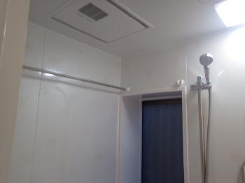 | 今回のバスパネルは4面同色、うっすらと花柄模様がついており可愛らしいデザインです。 新しく取り付けられた浴室乾燥のシステムにより、急な雨の日でも安心して洗濯物が干せますね。 |