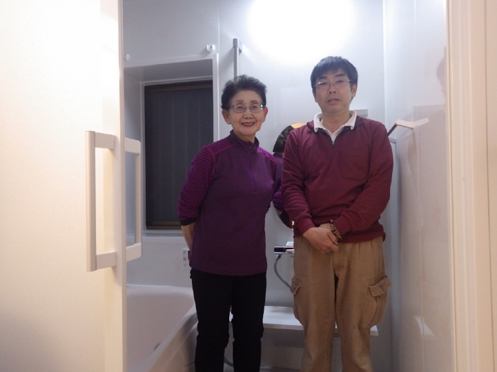 | 最後は新しくなった浴室でお施主様と一緒に記念撮影です。 S様、この度は誠にありがとうございました。 |