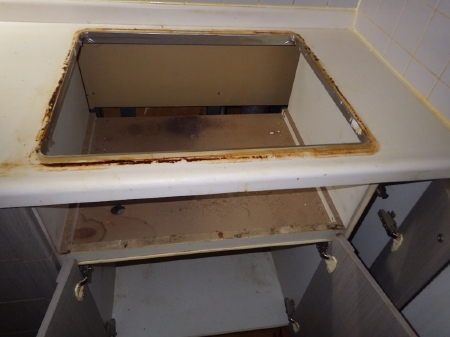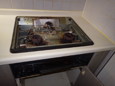 既存のビルトインコンロの解体撤去作業が完了いたしました。