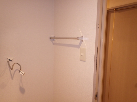 クロスが貼り直され、真っ白で気持ちの良い空間に仕上がりました。 こちらはクロス貼り換え後、別角度から撮影したお写真です。 洗濯機へと繋がる水栓は、緊急止水弁付きのものへと交換を行っていきます。