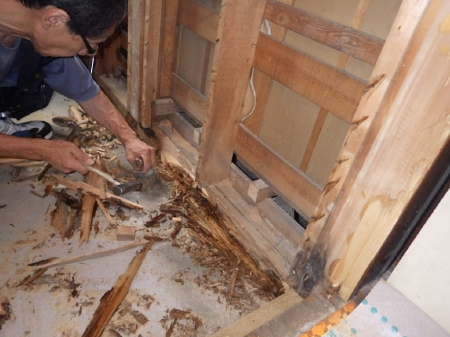 | 新しい土台を差し替えていきます。 いいリフォームはまず土台から。このような箇所もしっかりと補修したうえでリフォームを行っていきます。 |