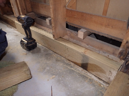| 差し替え前と比較すると見違えるように綺麗な土台になりました。 | 残りの箇所も、真新しい土台が入りました。 | 腐食の激しかった浴室ドア下も、丁寧に土台の差し替えを行っております。 |