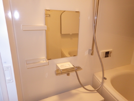 浴室の壁もアイボリーで高級感が出ています。 お風呂場全体的に清潔感が生まれました。 |