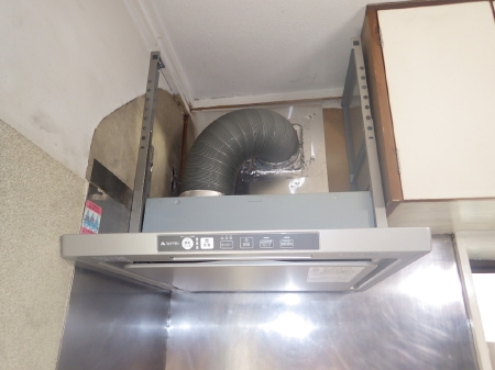 | キッチンのレンジフードも、水まわりと合わせて交換リフォームを行っていきます。 |
