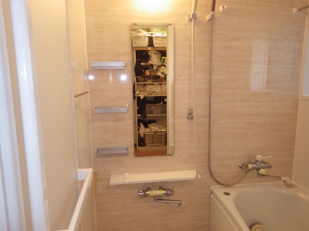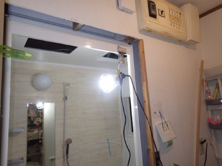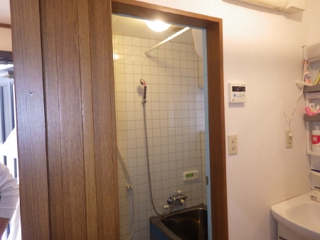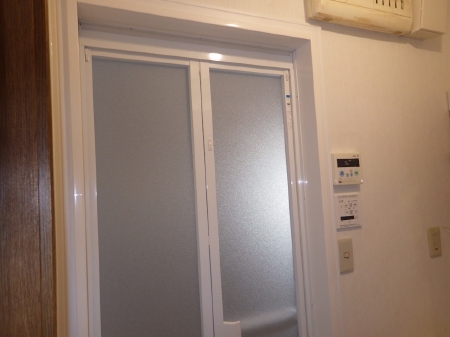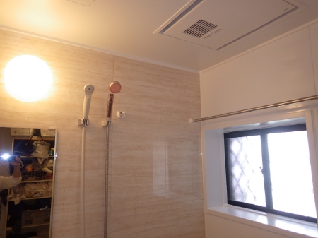 | こちらは浴室ドア付近を撮影したお写真です。 浴室換気などの設備も取り付けられ、さらに使いやすいお風呂になりました。 |