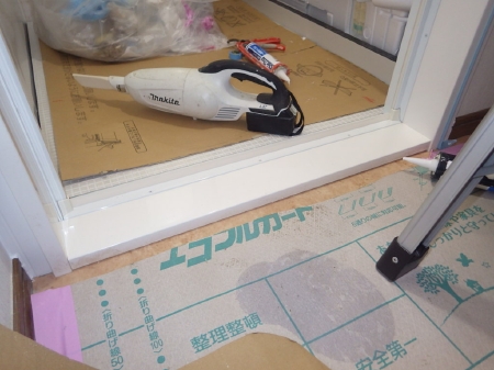 | 浴室出窓へ、窓枠の取り付け作業が完了いたしました。 | 最後に浴室ドア枠部分を取り付けていきます。 | 仕上げにコーキング作業を行い、ついに浴室リフォームが完了です。 |