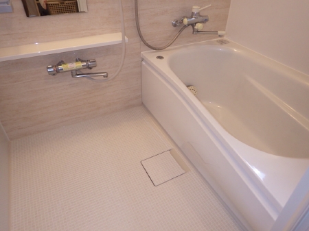 | こちらが施工後の浴室お写真です。 疲れた身体をゆっくりと休められ、広々とお使いいただける素敵な浴槽が設置されました。 |