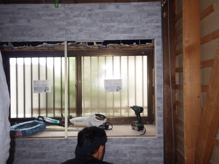 | 冬場のお風呂場が寒くならないように、窓はガラスが二重になっているペアガラスへ交換しました。 | 乾燥した土間の上に浴槽の土台を設置し、ユニットバスと浴室の床材を設置していきます。 | ペアガラスを設置した窓は今回のリフォームで出窓に変えていきますので、下地の補強を行っております。 |