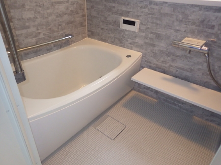 | こちらが施工後のお風呂のお写真です。 湾曲した浴槽が身体にフィットして、毎日の疲れをしっかりと癒してくれる素敵なお風呂にリフォーム完了です。 |