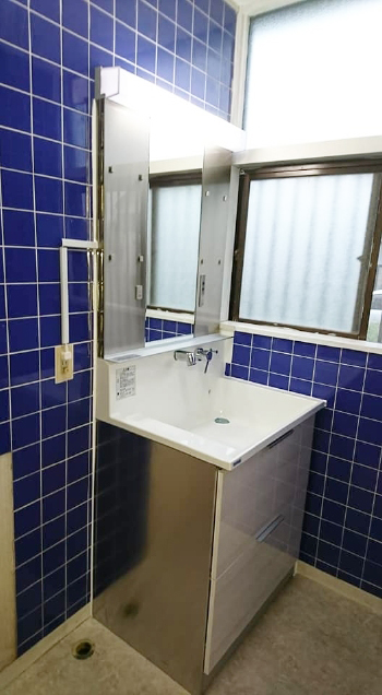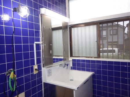| 代わってこちらは洗面化粧台です。 こちらも昔ながらの印象が強い、多少使い勝手の悪そうな洗面化粧台でした。 |