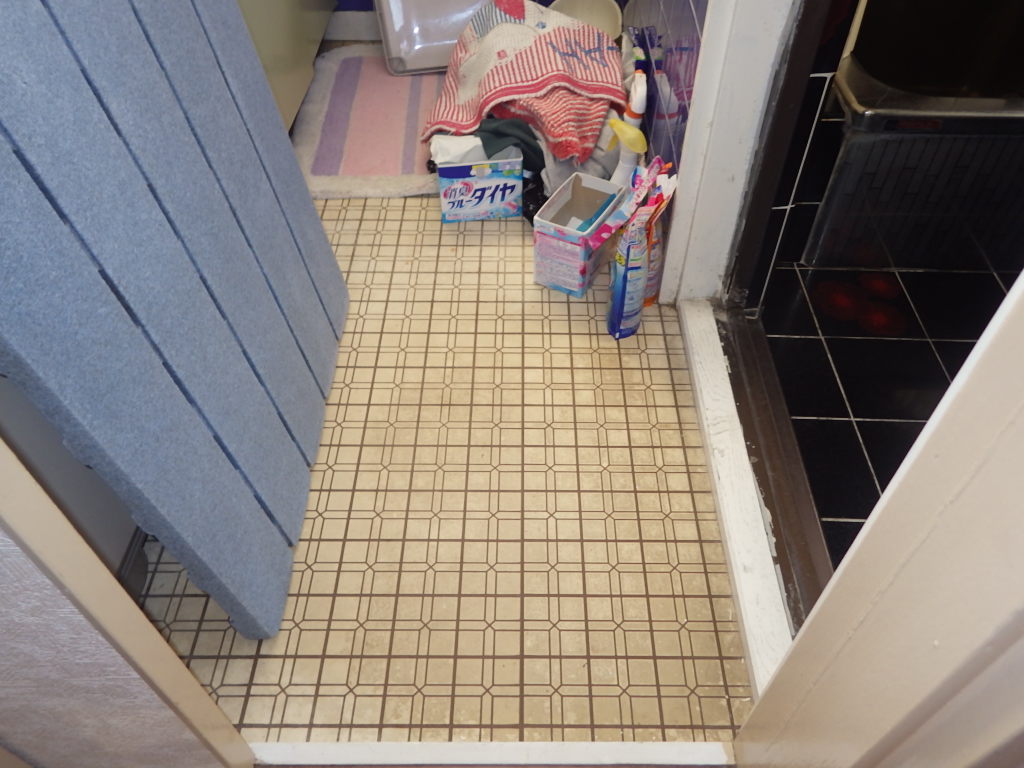 こちらは洗面所床のお写真です。 冬場も暖かくお使いいただける、統一感の溢れる水まわりへリフォームを行っていきます。 |