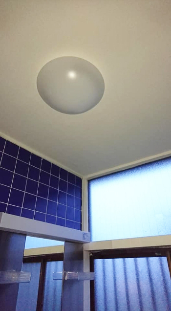 天井には新たにLED照明を取り付けていきます。これにてM様邸の水まわりリフォームが完了です。 |