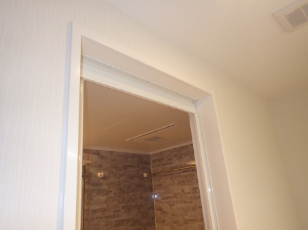 | こちらは浴室ドアのお写真です。 | 壁面の色味と統一感のある仕上がりとなっています。 |