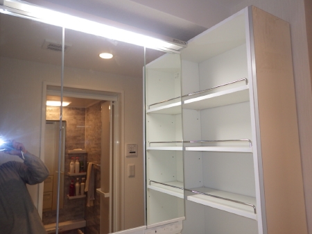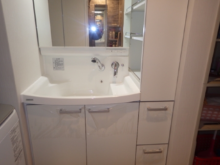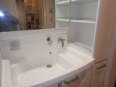 鏡も大きく立派な洗面化粧台でしたが、併せてさらに使いやすいものへと交換を行っていきます。 |
