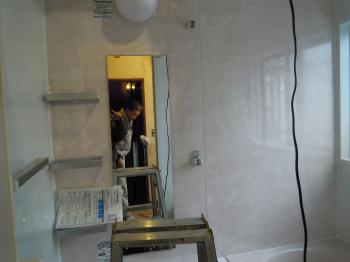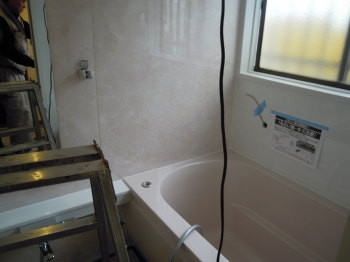 | ユニットバスの壁面も組み立てていきます。 | 新しいユニットバスの設置が完了しました。 |