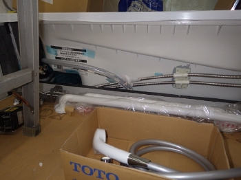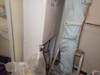 | 真っ白な給湯器へリフォームされました。 | 上部の配管も、目立たないようカバーを設置しています。 |