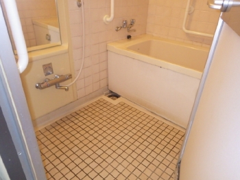 | こちらが施工前の浴室です。 浴槽は狭くまたぎが高いため、入りづらそうな浴槽になっています。 |