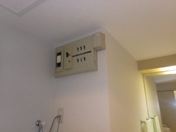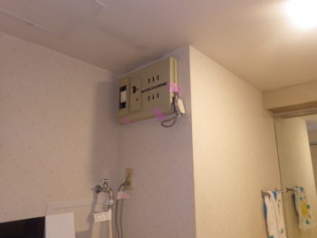 今回のリフォームで浴室乾燥機を取り付けるため、配電部に専用の回路を追加いたします。