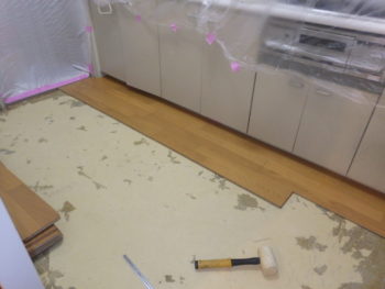 撤去後にフローリング材を貼っていきます。