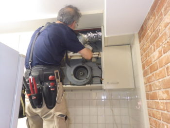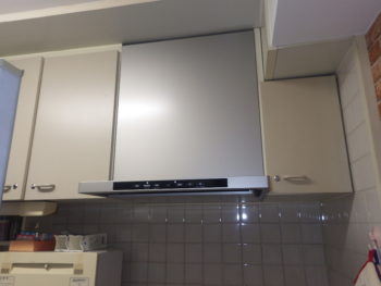 キッチンはレンジフードの吸い込みが悪くなっておりましたので、新しいものへと交換を行います。