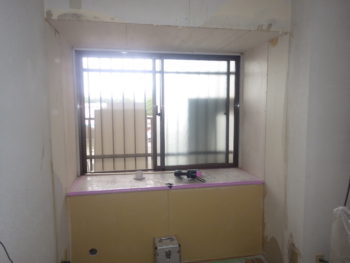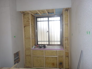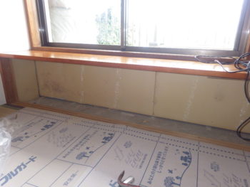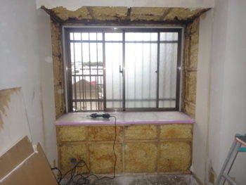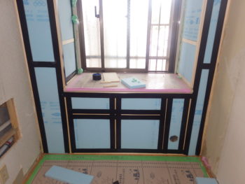 同時並行で、カビも発生し寒さが厳しかった窓際の壁では断熱材の入れ替えを行います。