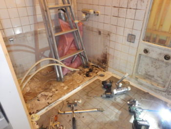 次に浴室リフォーム作業へと移っていきます。まずは既存ユニットバスの解体を行います。