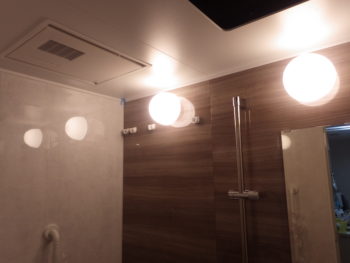 こちらは既存浴室のお写真です。 経年による汚れが蓄積されており、照明以上に暗い印象を受けます。