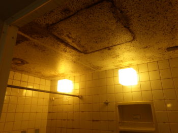 浴室の換気扇は吸い込みも悪く湿気が逃げにくいようで、天井にはカビも発生しておりました。