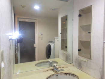 洗面化粧台も同様、築年による汚れや痛みが見受けられました。