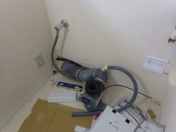 既存洗面化粧台を撤去いたしました。