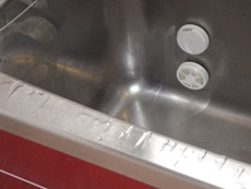 | シリコンを打つために、マスキングテープを貼っています。 |