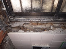 | 浴室の窓の部分です。ここも劣化が激しくなっています。 |