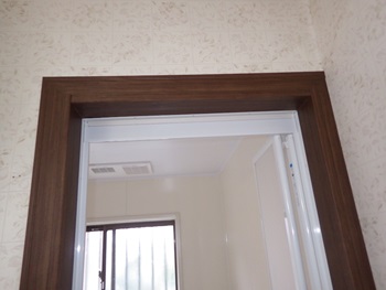 浴室の入口はこのような感じです。左側に隙間が開いているのがわかります。 |