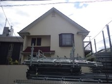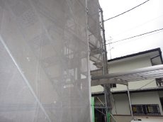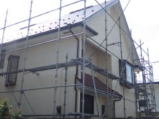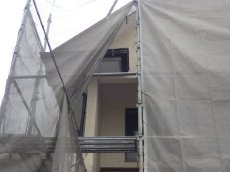 こちらは引きで撮影したお写真です。 足場をかけるには少し邪魔なカーポートが設置されていました。 |