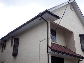 | こちらが施工後のお家の外観です。 今回のような雨樋の交換リフォームにも、実は火災保険が適用できるのです。 |