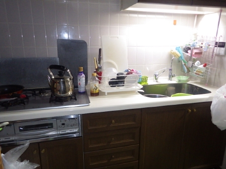 | こちらが施工前のキッチンです。以前こちらのマンションでリフォームされたM様よりご紹介いただきました。 築27年とのことでしたが、経年のわりに見た目は綺麗に保たれていました。 |