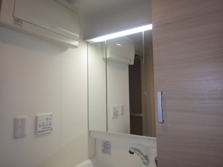 | 鏡も大きく照明も明るいため、空間に清潔感が生まれます。 | クロスも貼り替えられ、真っ白で素敵な空間に生まれ変わりました。 |