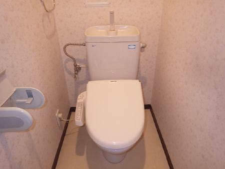 | 洗濯パンも交換を行い、細かな点もぬかりない洗面所になっています。 | トイレも真新しい便器が設置され、クロスとクッションフロアシートの貼り替えにより大満足のリフォームとなっています。 |